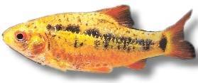 Populær og flot gul barbe der er ret stille i akvariet, går godt med de fleste andre arter. Størrelser i butikken: fra 1cm