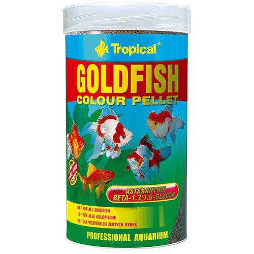 GOLDFISH COLOR PELLET er et specielt, komplet, farveforbedrende foder til daglig fodring af alle typer guldfisk (Carassius auratus) samt ung koi (Cyprinus carpio var.) Indholdet af astaxanthin tilskynder til rød farve i fisken og tilsætningen af BETA 1.3 / 1.6 GLUCAN og stabiliseret C-vitamin styrker immunforsvaret.