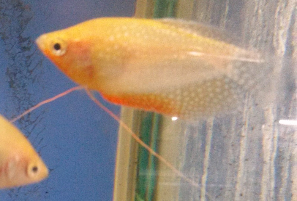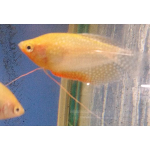 Denne Gurami arts han har en længere og spidsere rygfinne end hunnens. Det er en relativ rolig fisk der lever i stillestående vand, den kan godt klare meget varme forhold. Det er en labyrintfisk, der laver skumrede.