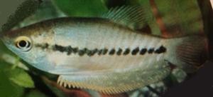 Slangeskinds gourami er en langstrakt, moderat komprimeret fisk med en lille rygfinne. Dens anal finne er næsten lige så lang som kroppen og bækkentalg finnerne er lange og trådlignende. Bagsiden er oliven i farven og flankerne er grønlige grå med en sølv skær. Et indlysende, uregelmæssig sort bånd strækker sig fra snude, gennem øjet, og til haleroden. Underdelen er hvidlig. Den bageste del af kroppen kan være mærket med svag tværgående striber. Finnerne er også grå-grønne, og iris i øjet, kan se ud som rav i gunstige vandforhold. Rygfinnerne af han fisk er spidse og bækkentalg finnerne orange til rød. Hannerne er også slankere end de mindre farverige hunner. De kan vokse op til 25 cm i længden. Imidlertid, når de normalt ikke op på mere end 15 cm i fangenskab.