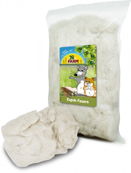 Kapokfibre fra JR Farm giver anledning til en rigtig hyggelig rede til alle små gnavere. Kapok er i familie med bomuldsplanten, den giver et behageligt klima i reden og sørger for at transportere fugten ud af reden.