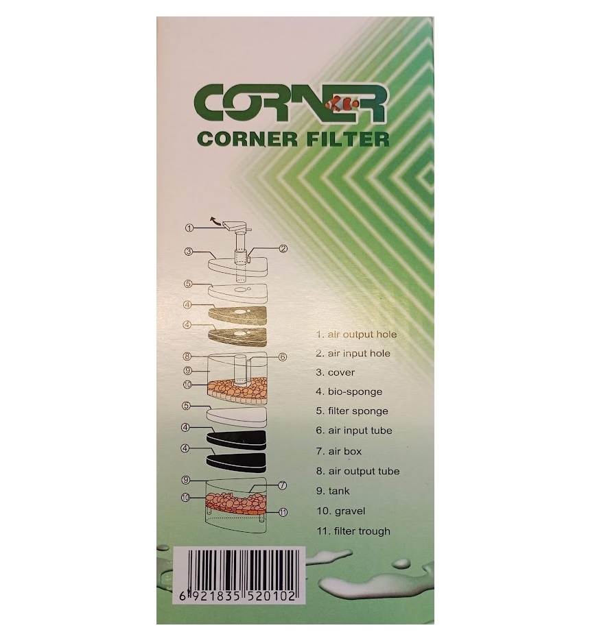 2. Design: Filteret er designet til at passe ind i hjørner af akvariet, hvilket sparer plads og giver en pænere æstetik.