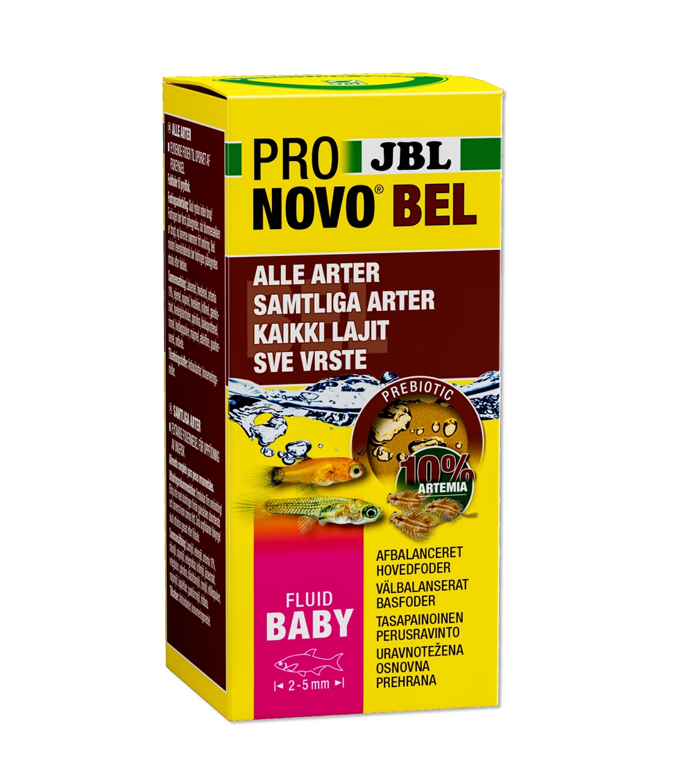 Hos viviparøse eller mundvandende arter er de unge fisk større og spiser straks maden fra den anden pose JBL PRONOVO FLAKES BABY og levende artemia (JBL Artemio-system).