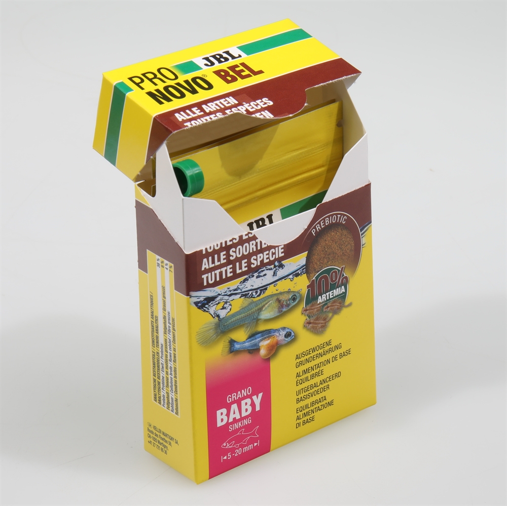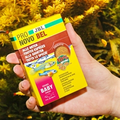 Hos viviparøse eller mundvandende arter er de unge fisk større og spiser straks maden fra den anden pose JBL PRONOVO FLAKES BABY og levende artemia (JBL Artemio-system).