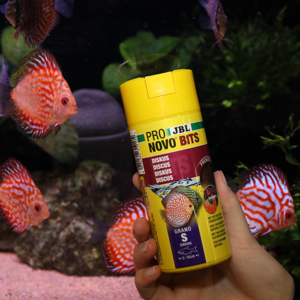 Diskuscichlider og nogle andre cichlidearter kan være meget kræsne med hensyn til mad. Dette blev taget i betragtning med JBL PRONOVO BITS og der blev valgt råvarer som rejer, som fisken ikke kan modstå.