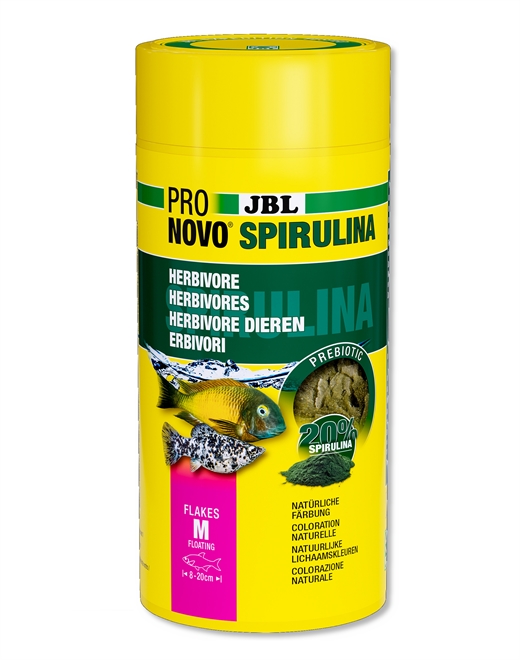 Spirulina er blågrønalger, hvoraf nogle arter, såsom S. platensis, der behandles her, har ideelle proteinniveauer til prydfiskernæring. I øvrigt er spirulinaindholdet på 20 % i JBL PRONOVO SPIRULINA-foderet optimalt - mere ville ikke være sundt for fiskene! Den naturlige astaxanthin (et caroten) i algerne forårsager fiskens smukke farve. Dette er endnu en grund til, at spirulina-alger er meget populære til at fodre prydfisk.