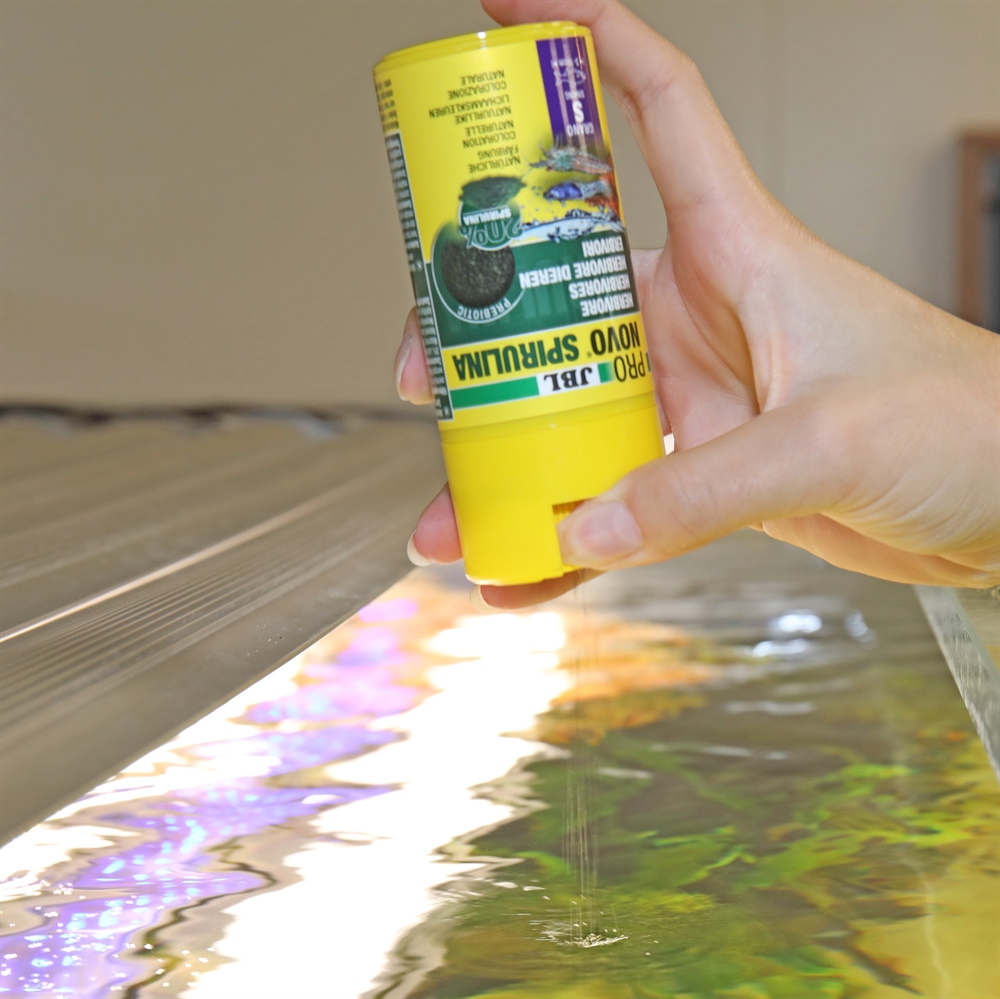Spirulina er blågrønalger, hvoraf nogle arter, såsom S. platensis, der behandles her, har ideelle proteinniveauer til prydfiskernæring. I øvrigt er spirulinaindholdet på 20 % i JBL PRONOVO SPIRULINA-foderet optimalt - mere ville ikke være sundt for fiskene! Den naturlige astaxanthin (et caroten) i algerne forårsager fiskens smukke farve. Dette er endnu en grund til, at spirulina-alger er meget populære til at fodre prydfisk.
