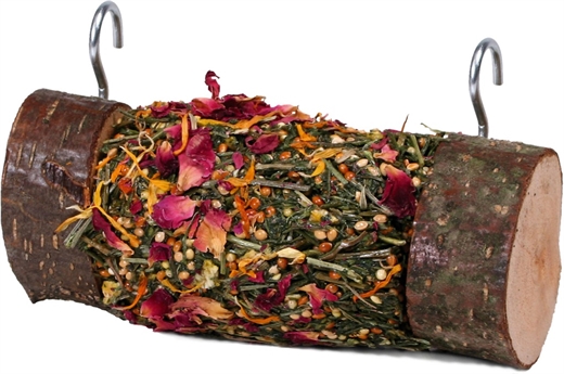 Rulle til ophæng i buret, med fyld af lækre urter og blomster.