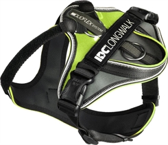 IDC®Longwalk hundeselen har indbyggede elastiske elementer tre steder, som efter de mindste bevægelser gradvist træder i drift afhængigt af trække kraften.