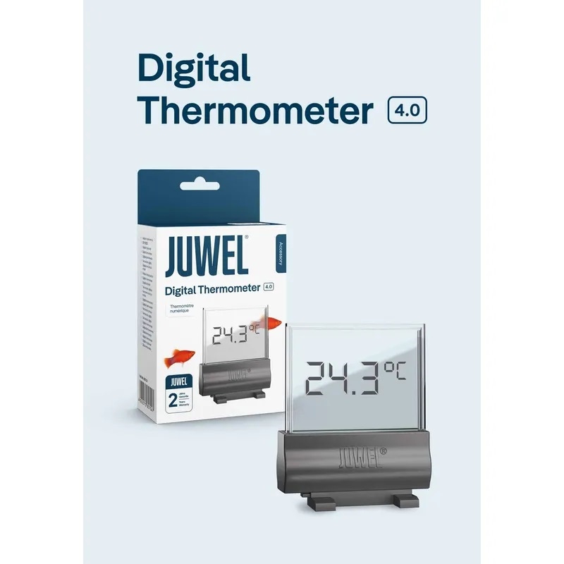 Hold et pålideligt øje med dit akvariums temperatur – med den nye JUWEL Digital Termometer 4.0 Kombinerer dokumenteret målenøjagtighed med smarte nye funktioner, Digital Termometer 4.0 tilbyder endnu større brugervenlighed og sikkerhed. Takket være det store LCD-display er den aktuelle temperatur altid let at aflæse, mens det moderne, slanke design perfekt komplementerer dit JUWEL akvarium. Termometeret giver præcise målinger i området 0 til 40 °C, hvilket sikrer ideelle forhold for dit akvarieliv.