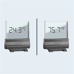 En praktisk knap på bagsiden lader dig nemt skifte mellem Celsius og Fahrenheit – præcis som du foretrækker.