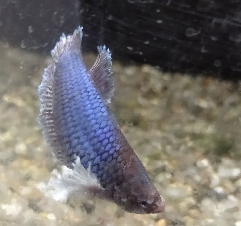 Skumredebygger, hanner kan ikke holdes sammen.Kampfisk, Betta splendens. LEVESTED: SØ-Asien. STØRRELSE: ca. 5-6 cm. AKVARIE STØRRELSE: Artsakvarium fra 4 l. Selskabsalvarium fra. 50 l. TEMPERATUR: 24-30 grader. FODER: Tørfoder, Kampfiskefoder, Dafnier, Myggelarver og Tubifex. OPDRÆT OG ADFÆRD: Kampfisk trives bedst i et lavvandet akvarium på ca. 15 cm. Akvariet skal være veltilplantet, gerne med flydeplanter som hannen kan bygge sin skumrede i. Man må aldrig holde to Kampfiske hanner sammen for så vil de ødelægge hinanden. Det er let at se forskel på kønnene, hannen har store slørfinner, mens hunnen er mindre og har små finner. Det er meget let at opdrætte Kampfisk.
