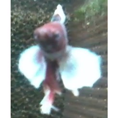 Skumredebygger, hanner kan ikke holdes sammen.Kampfisk, Betta splendens. LEVESTED: SØ-Asien. STØRRELSE: ca. 5-6 cm. AKVARIE STØRRELSE: Artsakvarium fra 4 l. Selskabsalvarium fra. 50 l. TEMPERATUR: 24-30 grader. FODER: Tørfoder, Kampfiskefoder, Dafnier, Myggelarver og Tubifex. OPDRÆT OG ADFÆRD: Kampfisk trives bedst i et lavvandet akvarium på ca. 15 cm. Akvariet skal være veltilplantet, gerne med flydeplanter som hannen kan bygge sin skumrede i. Man må aldrig holde to Kampfiske hanner sammen for så vil de ødelægge hinanden. Det er let at se forskel på kønnene, hannen har store slørfinner, mens hunnen er mindre og har små finner. Det er meget let at opdrætte Kampfisk.