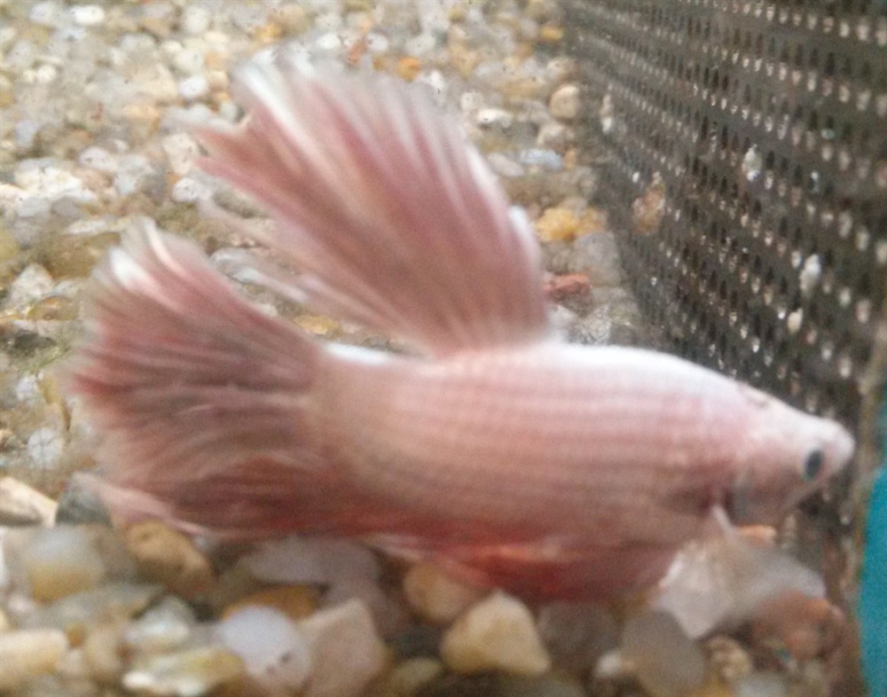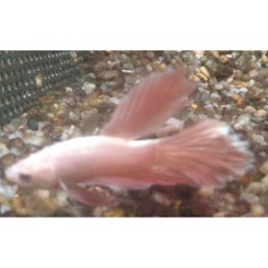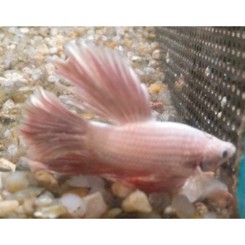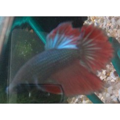 Skumredebygger, hanner kan ikke holdes sammen.Kampfisk, Betta splendens. LEVESTED: SØ-Asien. STØRRELSE: ca. 5-6 cm. AKVARIE STØRRELSE: Artsakvarium fra 4 l. Selskabsalvarium fra. 50 l. TEMPERATUR: 24-30 grader. FODER: Tørfoder, Kampfiskefoder, Dafnier, Myggelarver og Tubifex. OPDRÆT OG ADFÆRD: Kampfisk trives bedst i et lavvandet akvarium på ca. 15 cm. Akvariet skal være veltilplantet, gerne med flydeplanter som hannen kan bygge sin skumrede i. Man må aldrig holde to Kampfiske hanner sammen for så vil de ødelægge hinanden. Det er let at se forskel på kønnene, hannen har store slørfinner, mens hunnen er mindre og har små finner. Det er meget let at opdrætte Kampfisk.