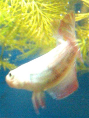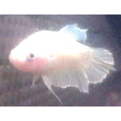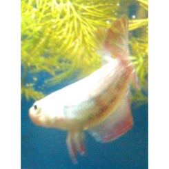 Kampfisk, Betta splendens crowntail. LEVESTED: SØ-Asien. STØRRELSE: ca. 5-6 cm. AKVARIE STØRRELSE: Artsakvarium fra 4 l. Selskabsalvarium fra. 50 l. TEMPERATUR: 24-30 grader