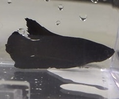 Skumredebygger, hanner kan ikke holdes sammen.Kampfisk, Betta splendens. LEVESTED: SØ-Asien. STØRRELSE: ca. 5-6 cm. AKVARIE STØRRELSE: Artsakvarium fra 4 l. Selskabsalvarium fra. 50 l. TEMPERATUR: 24-30 grader. FODER: Tørfoder, Kampfiskefoder, Dafnier, Myggelarver og Tubifex. OPDRÆT OG ADFÆRD: Kampfisk trives bedst i et lavvandet akvarium på ca. 15 cm. Akvariet skal være veltilplantet, gerne med flydeplanter som hannen kan bygge sin skumrede i. Man må aldrig holde to Kampfiske hanner sammen for så vil de ødelægge hinanden. Det er let at se forskel på kønnene, hannen har store slørfinner, mens hunnen er mindre og har små finner. Det er meget let at opdrætte Kampfisk.