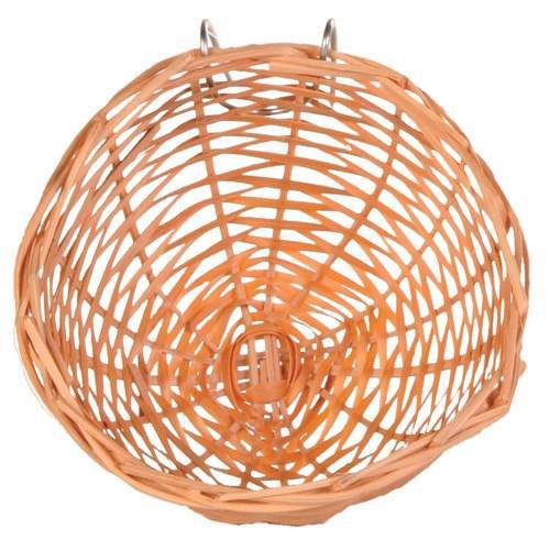 Redekurv i bambus til kanariefugle. kurven hænges blot op på siden af et tremmebur ved hjælp af de 2 metalkroge i siden.