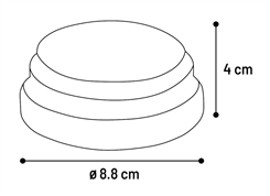 Materialet er plastik og knappen har en diameter på 8,8 cm.