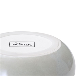 Keramikskål Lisboa af mærket Hunter. Keramisk skål af høj kvalitet med flot glasur. Hver skål er et smukt unikt eksemplar, der er noget helt særligt på en perfekt uperfekt måde med de bevidste farveafvigelser og pletter. Takket være den høje vægt og silikoneringen i bunden står skålen sikkert og næsten ubevægeligt selv på glatte fliser, hvilket gør det lettere for hunden at indtage foder og vand.