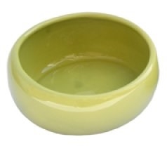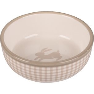 Cremfarvet med beige mønster og et kanintryk indvendigt i bunden.