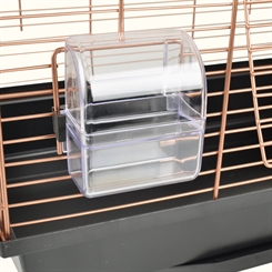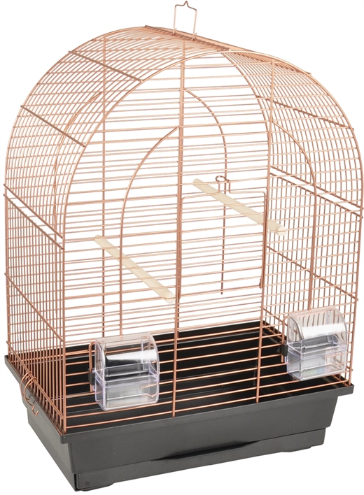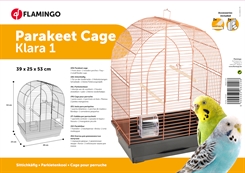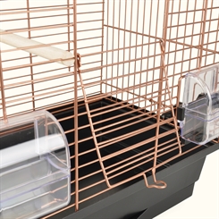 Klara 1 fugleburet er et stilfuldt kobberfarvet bur, der har alt, hvad din fugl har brug for. Den leveres med 2 mad-/vandskåle og siddepinde. Den udskydelige bakke gør rengøringen til en leg.