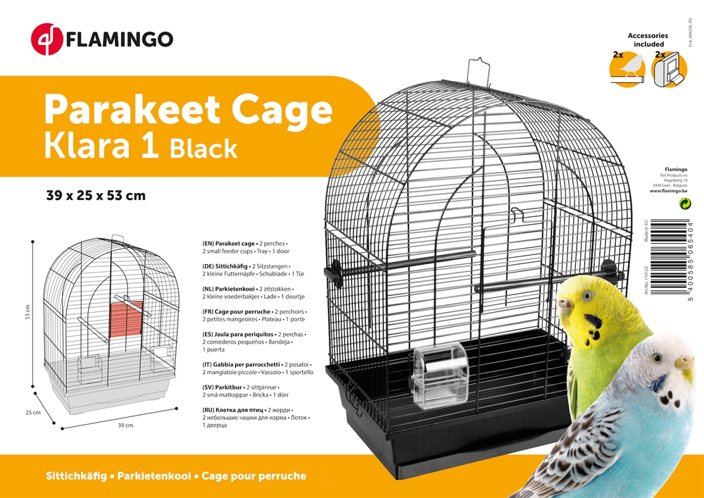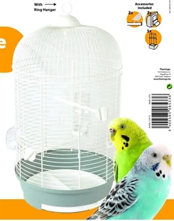 Giv din fugl et nyt hjem i dette smukke, rummelige fuglebur komplet med siddepinde og drikkebægre. Det er nemt at hænge og holde rent med Klara. Perfekt til din fjerklædte ven!