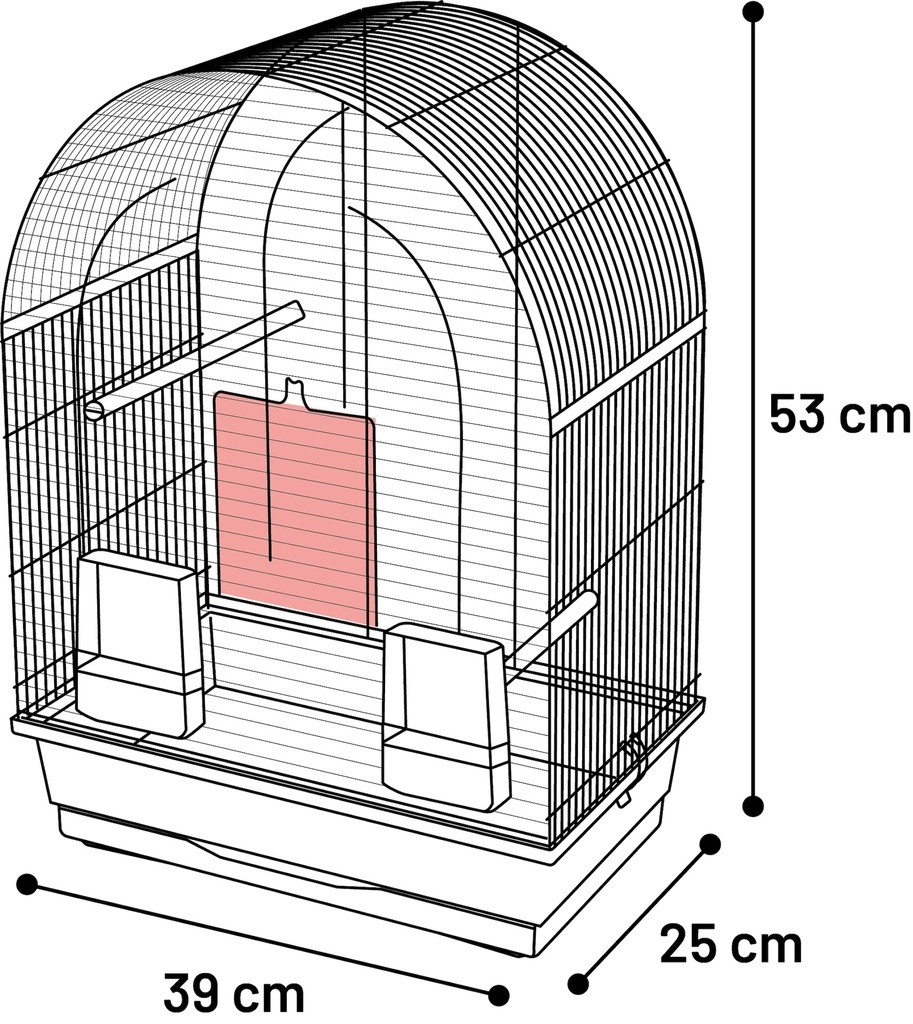 Egenskaber indlejring generelt:    Nem at rengøre , Udtrækkelig , Inkluderer aftagelig fodrings- og/eller drikkeskål , Aftagelig , Samler selv , Med 1 svingdør , Med clips på siden , Med håndtag , Med plastikbakke , Med træpinde(r)