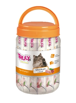 Kød 80% (kyllingekød 40%, svinekød 40%), kartoffelstivelse, gulerod, græskar, mangold, rød peber, gelatine, roefibre, kommen (0,5%) og mineraler.