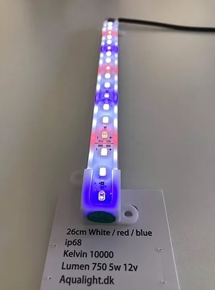 Komplet sæt - Alubar 1x26cm Rød Hvid Blå - LEDlys til akvarie på 30-40cm
