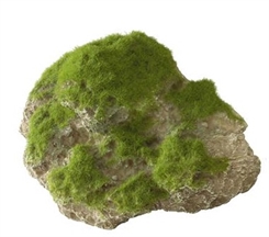Kunstig dekorations sten med mos, med sugekop på den flade bagsiden.
