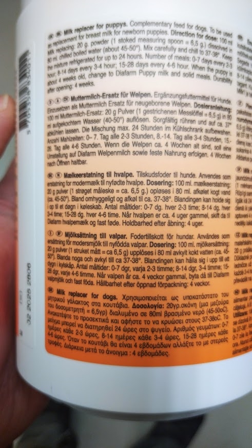 Når hvalpen er omkring 4 uger gammel bør man skifte til Diafarm Puppy Milk -H19551