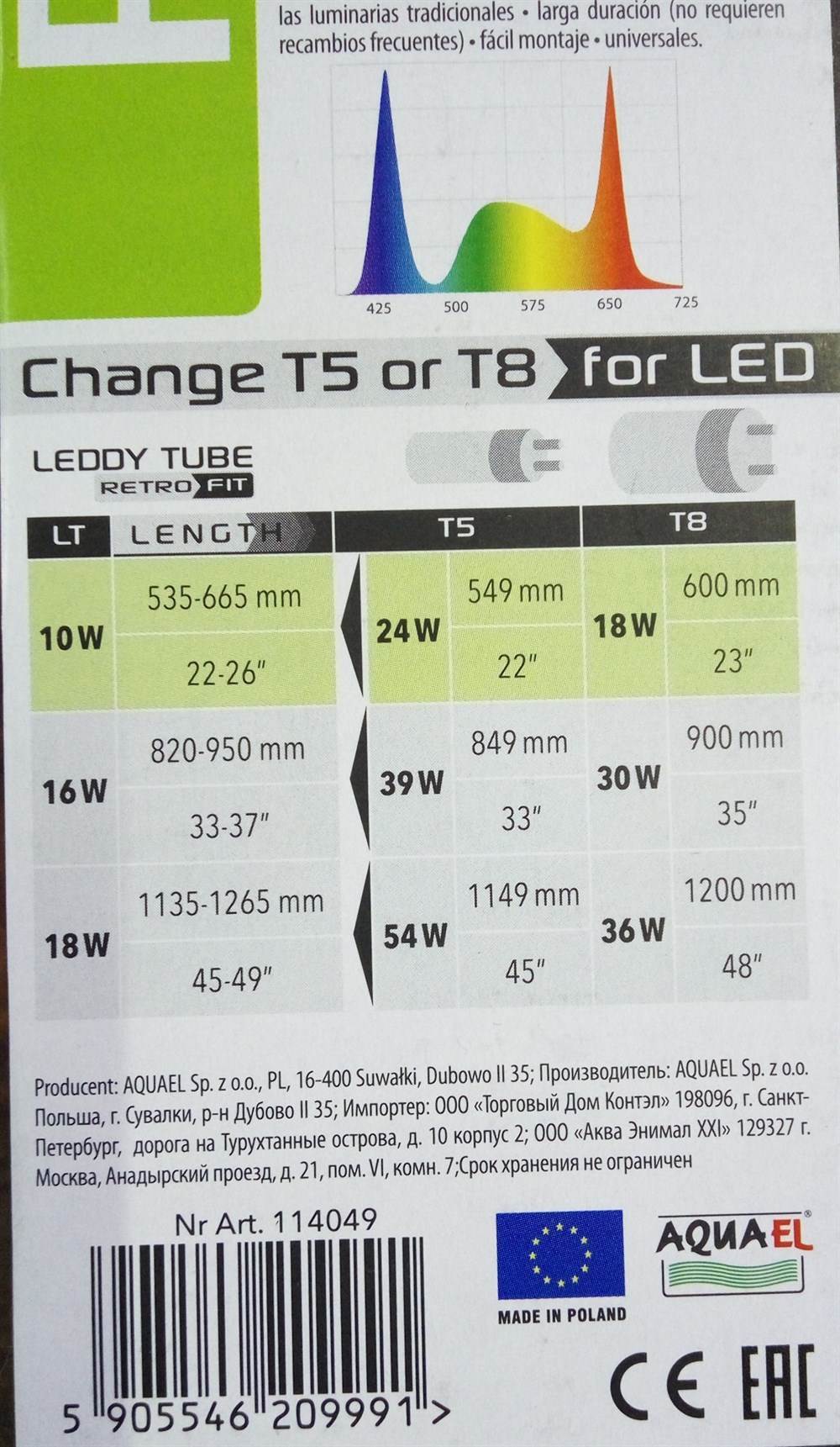 Erstatter lysrør 24w T5 549mm eller 18w T8 600mm