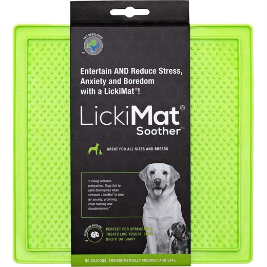Lickimat er udviklet til at forhindre kedsomhed hos din kat eller hund. Spred dyrets yndlingsføde på måtten, så de kan se efter hver mundfuld med tungen. Slikningen er beroligende for dyret, og det øger smagssansen ved at lade dyret nyde en lille mængde mad.
