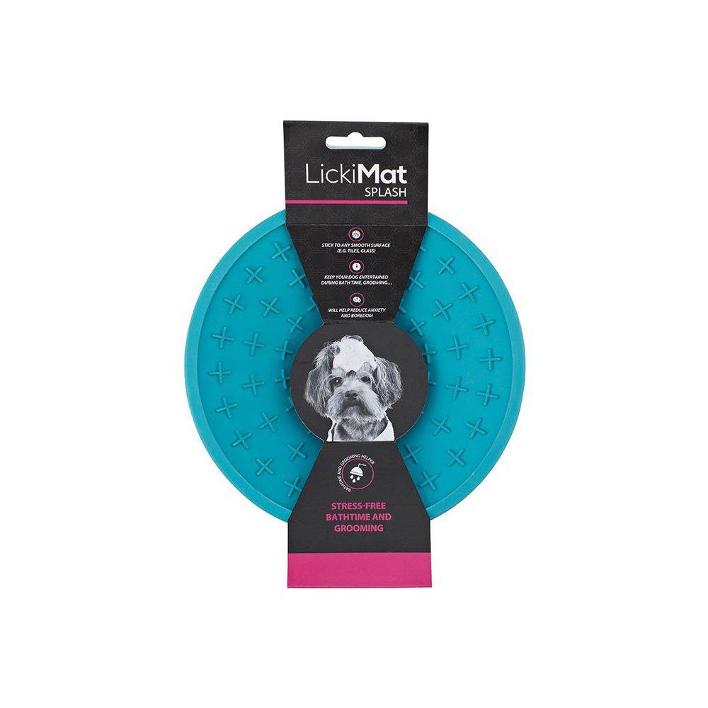 Lickimat Splash har en sugekop, der gør det muligt at fastgøre den til alle hårde overflader, såsom fliser, glas eller laminat. Spred dyrets yndlingsfoder på overfladen, så de kan lede efter hver mundfuld med tungen. Slikket er beroligende for dyret, og det øger smagssansen ved at lade dyret nyde en lille mængde mad.