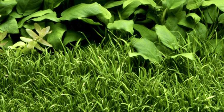 Den bunddækkende Lilaeopsis brasiliensis fra Sydamerika kan danne en meget tæt vækst, men en egentlig ''græsplæne-virkning'' opnås kun ved høje lysintensiteter. Højden er så 4-7 cm. Ved indplantningen i akvariet kan små klumper (ca. 1/8 potte) placeres med få centimeters afstand, da beplantningen herved hurtigere vokser sammen. Den bør dog stilles på en åben plads uden skygge fra andre planter, for at lyset kan nå ned til planten. Lilaeopsis brasiliensis kan bruges i havedammen og tåler desuden de lave saltkoncentrationer i et brakvandsakvarie.