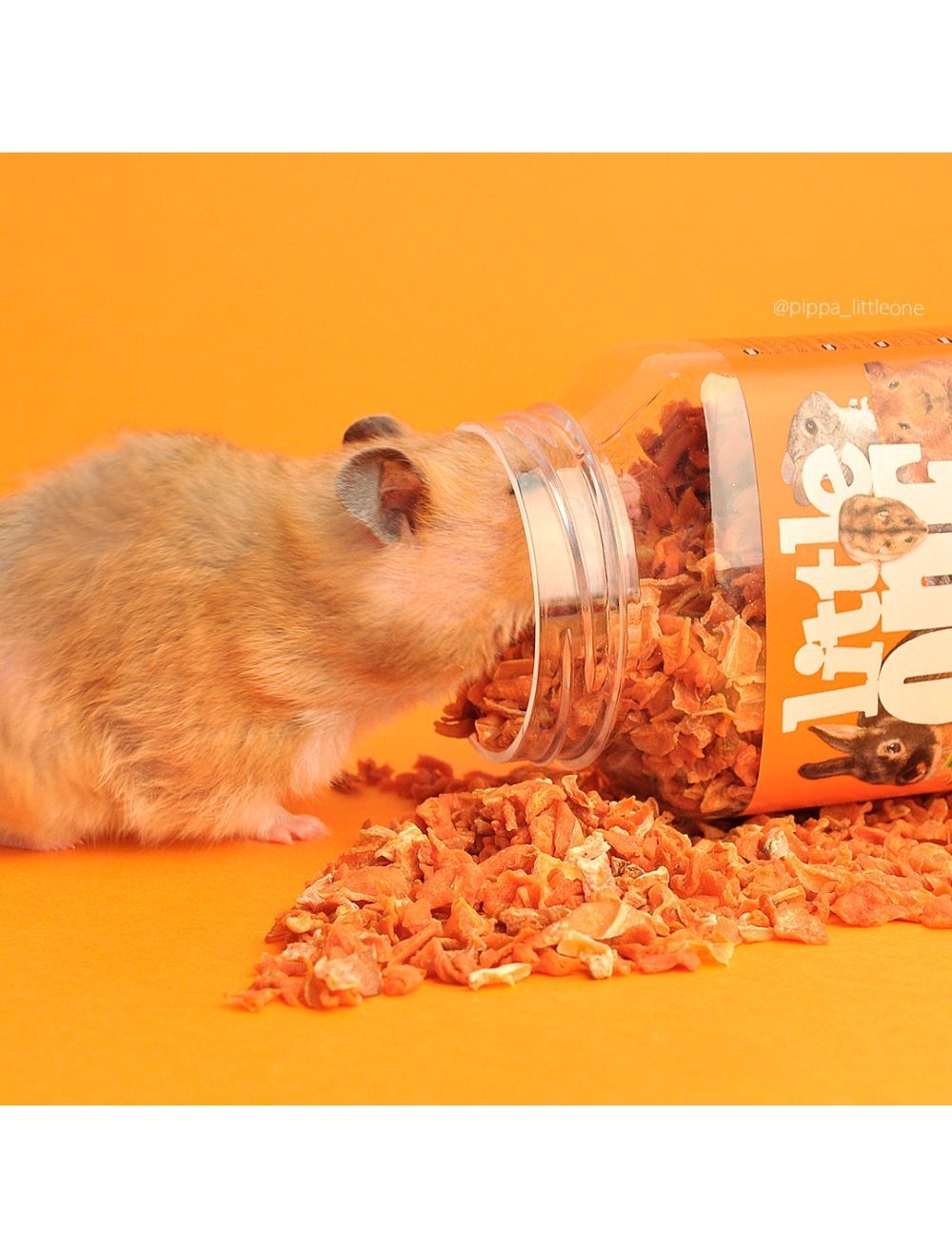 Disse tørrede gulerødder behandles ved hjælp af højteknologisk tørring, hvorved gulerøddernes smag og næringsstoffer bevares intakte.