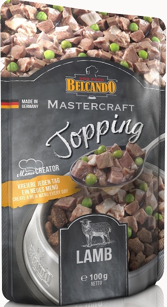 De nye Belcando Mastercraft toppings tillader dig at tilføje prikken over i'et til enhver tørfoder menu. De friske kød terninger er forsigtigt kogt i deres egen saft og blandet med nogle grøntsager.