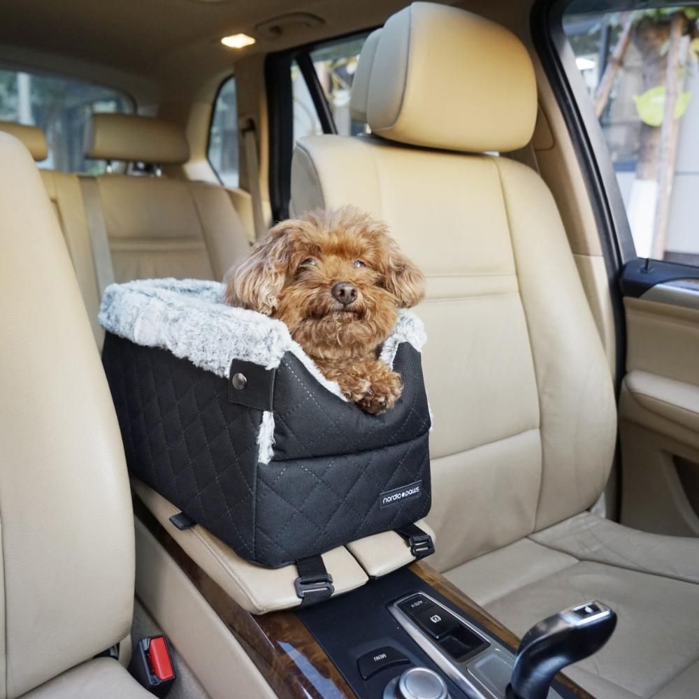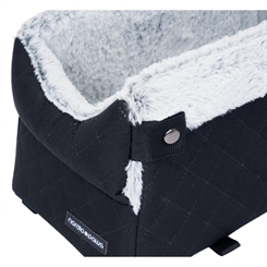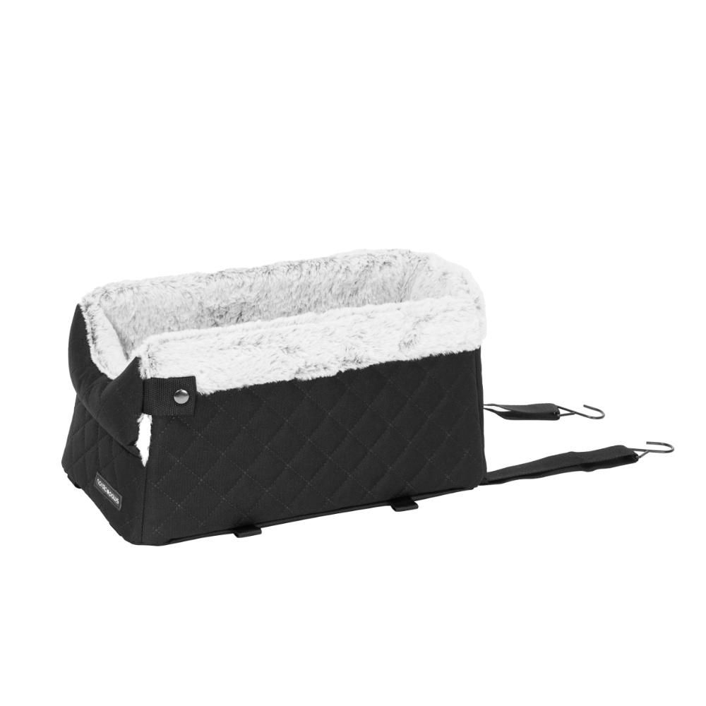 Molly bilsæde af mærket Nordic Paws. Smart bilsæde til motering i midten af bilen. Giver hunden mulighed for at sidde højere, så den kan se ud ad ruderne. Med justerbare stropper, der passer til  midterkonsollen i forskellige biler. Med vaskbar og vendbar pude.