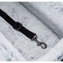 Bemærk: Snorerne til at sætte hunden fast i, er kun for at hunden bliver på sædet. Snoren sikrer IKKE hunden ved uheld. Her skal anvendes en dertil godkendt sele og strop. Snoren monteres i selen og ikke i halsbåndet, da hunden herved kan blive kvalt ved biluheld.