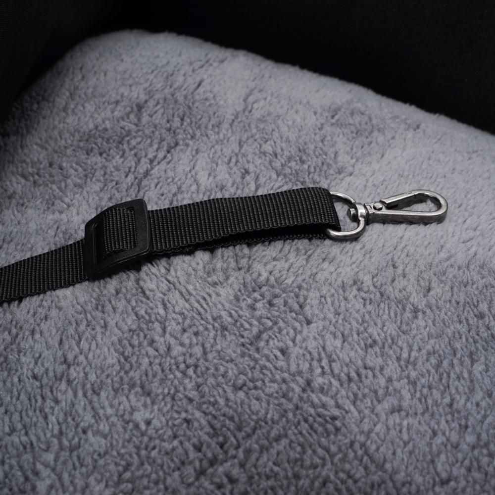 Bemærk: Snorerne til at sætte hunden fast i, er kun for at hunden bliver på sædet. Snoren sikrer IKKE hunden ved uheld. Her skal anvendes en dertil godkendt sele og strop. Snoren monteres i selen og ikke i halsbåndet, da hunden herved kan blive kvalt ved biluheld.