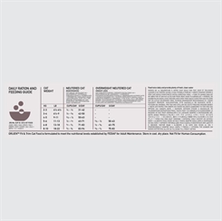 Metaboliserbar energi er 3710 kcal/kg (464 kcal pr. standard 125 g kop) med kalorier fordelt med 45 % fra protein, 18 % fra kulhydrater og 36 % fra fedt.