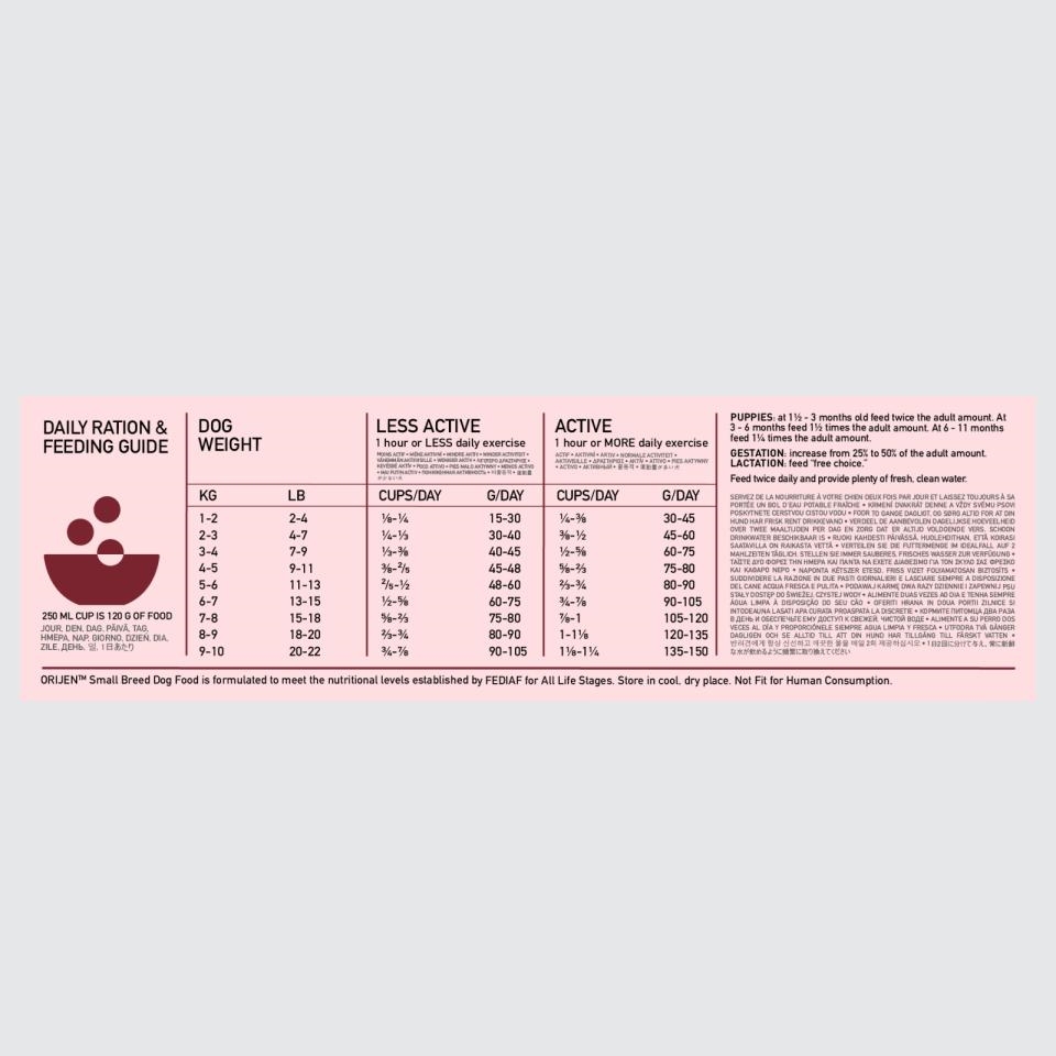 Serveres tørt eller let fugtet. Se din dyrlæge regelmæssigt. For at hjælpe med at opretholde friskheden anbefaler vi at tætne posen og opbevare den på et køligt, tørt sted. * HVALPE: ved 1 1/2 - 3 måneder gammel fodres der med det dobbelte af den voksne mængde; ved 3-6 måneder fodres der med 1 1/2 gange den voksne mængde; ved 6-11 måneder fodres der med 1 1/4 gange den voksne mængde. * GRAVIDITET: øg fra 25% til 50% af den voksne mængde. * LAKTATION: fodres 'fri valg'. * Fodr to gange dagligt og sørg for masser af friskt, rent vand.