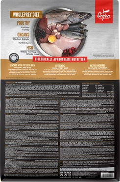 • Vores autentiske WholePrey-diæt indeholder de saftige dele af byttet som fjerkræ eller fisk, organer og brusk for at efterligne, hvad din hunds forfædre spiste i naturen.