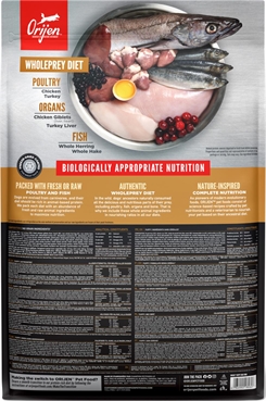 Vores autentiske WholePrey-diæt indeholder de saftige dele af byttet som fjerkræ eller fisk, organer og brusk for at efterligne, hvad din hunds forfædre spiste i naturen.