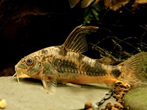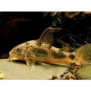 Adfær: Fredelig. - Stimefisk 3-6stk. - Holder bunden ren for fiskefoder. - Plettet pansermalle, Corydoras paleatus. - LEVESTED: S-Amerika. - STØRRELSE: ca. 7 cm. - AKVARIE STØRRELSE: fra 50 l. - TEMPERATUR: 23-26 grader. - FODER: Planterester, Dafnier, Myggelarver, Tørfoder og Enkytræer. - OPDRÆT OG ADFÆRD: Plettet pansermalle er en fredelig og meget aktiv bundfisk. Hunnen er kraftigere og større end hannen. Plettet pansermalle er den pansermalle som er lettest at formere, de yngler tit hvis man tømmer noget varmt vand af akvariet og erstatter det med noget nyt koldt. De lægger deres æg overalt i akvariet både på glasset, rødder, sten og planter.