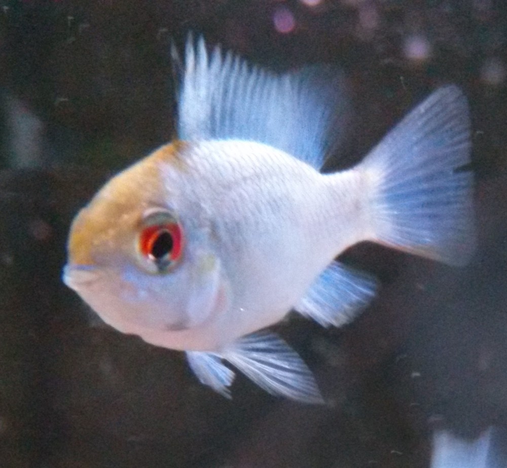 Microgeophagus / Papliochromis ramirezi Electric blue er en lille syd amerikansk dværg ciklide i en fremavlet blå varient.