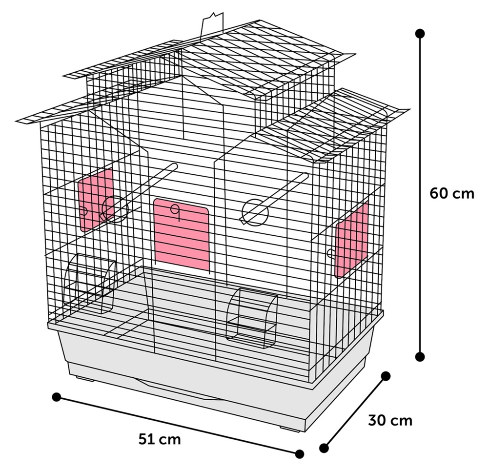 Parakitburet er perfekt til dine fjerklædte venner! Med sine metalliske blå og sorte farver ser det ikke kun stilfuldt ud, men er også holdbart takket være pulverlakeringen. Buret har 2 siddepinde og 2 mad-/vandskåle og er nemt at rengøre med den aftagelige bakke. Med 3 svingdøre er det super nemt at få adgang til dine parakitter.