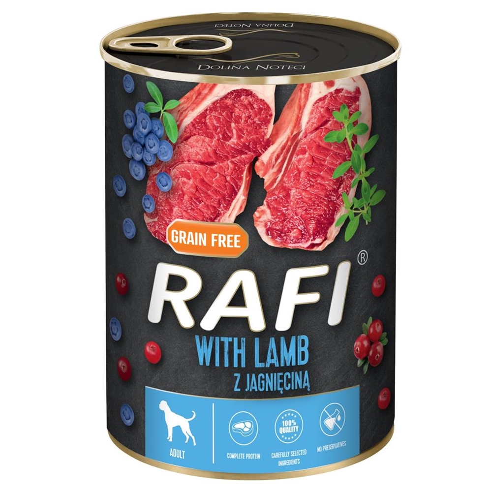 Kød og animalske biprodukter 65% (lam 4%), frugt (blåbær 2%, tranebær 2%), mineraler, olier og fedtstoffer (hørfrøolie 0,2%), tørret timian 0,01%.