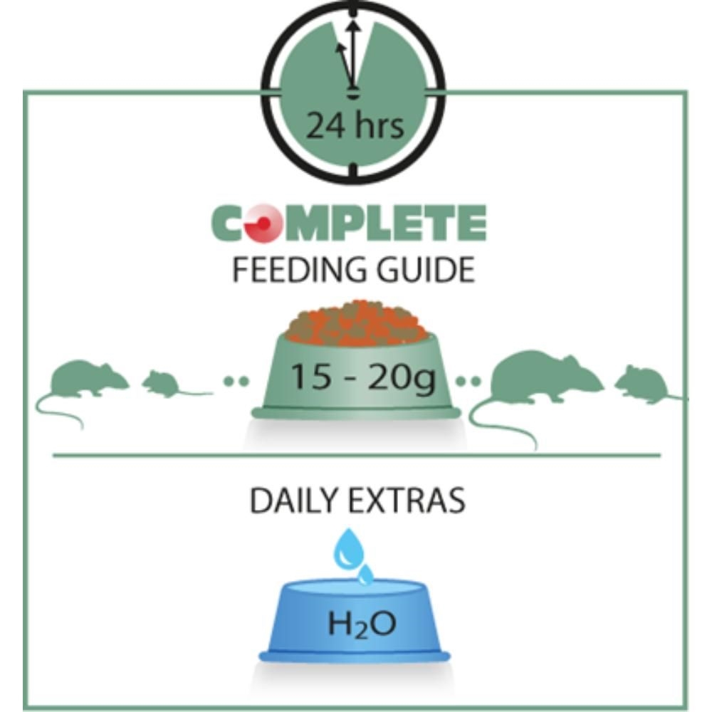 Versele-Laga Complete Rat & Mouse er et komplet foder til rotter og mus.  De usædvanligt velsmagende alt-i-en-piller forhindrer selektiv spiseadfærd. På den måde får dyret alle essentielle næringsstoffer og forbliver sundt. Foderet indeholder kylling, som er en naturlig kilde til animalsk protein og korn til energi og vitalitet. Specielt skræddersyet til ernæringsbehovene hos rotter og mus. Den optimale tekstur af pillerne giver ekstra tandrensning og reducerer tandplak.