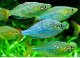 Melanotaenia Praecox are one of the most common and most stunning of the rainbowfish family. Unlike their Melanotaenia brethren this fish does not feature prominent stripes, but has a brilliant blue sheen. They are easy to sex with the males having bright red fins and the females having fins ranging in color from yellow to light orange. They look best in a tank with some shade provided from a cover of floating plants along with a dark substrate and background. They are a peaceful schooling fish suitable for community aquariums.